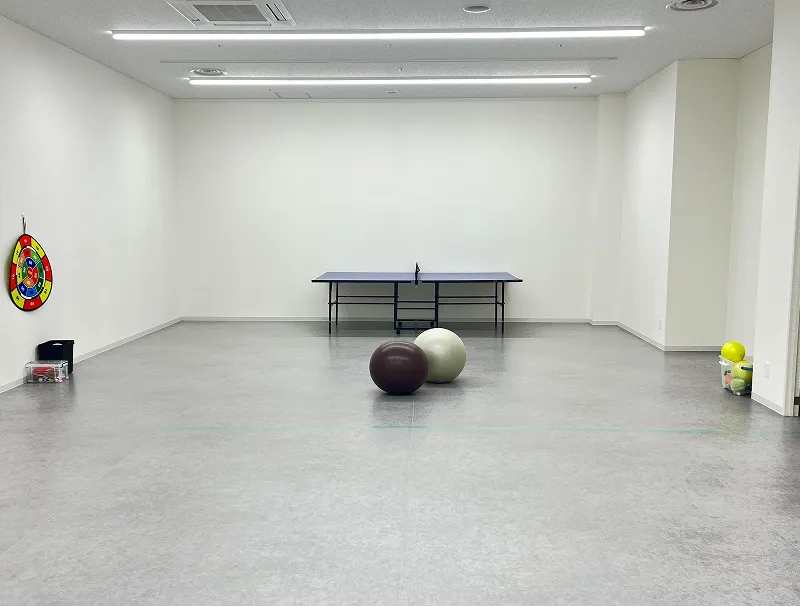 解放感のあるスタジオでは、卓球やダーツ、ドッジボールなどでのびのび身体を動かすこともできます!